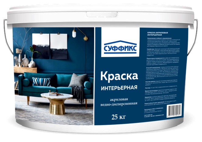 Краска интерьерная моющаяся СУФФИКС белая 4,6 л в Ростове-на-Дону | Купить по цене 566.26 руб., доставка — Принеси Подай